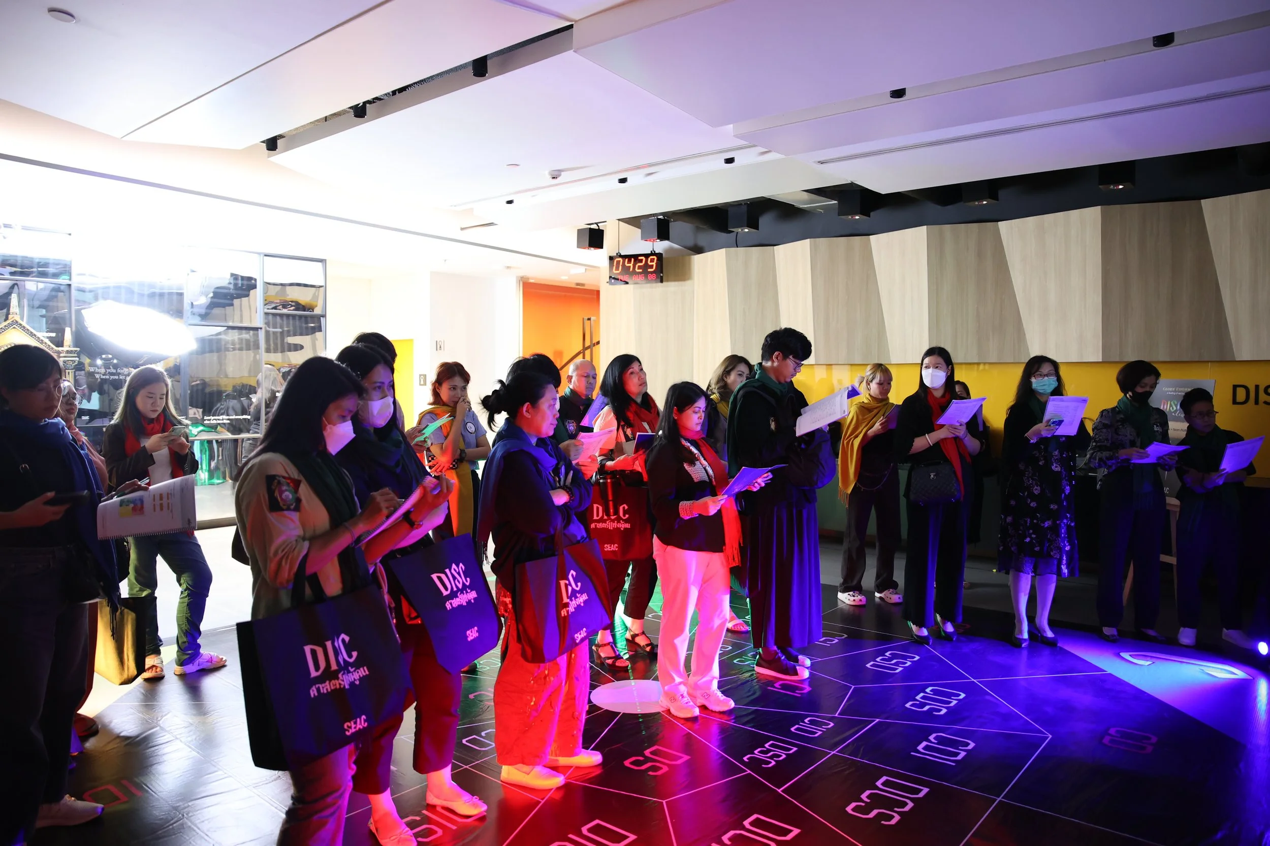 โจทย์ของเราที่ได้รับในวันนั้น คือ ทำให้ผู้เข้าร่วมงานสัมผัสประสบการณ์การเรียนรู้ขั้นสุด บนพื้นที่ของ SEAC จำนวน 3 ชั้น ภายในตึก FYI Center จากลิฟท์ลานจอดรถ ก้าวเข้าสู่พื้นที่ SEAC ตั้งแต่บันไดขั้นแรก ทะลุไปยังทุกห้อง ทุกพื้นที่ จนถึงห้องน้ำของแต่ละชั้น วางเส้นทางการเดินให้คนกว่า 130 คน ให้เขาตื่นเต้นขึ้นตามแต่ละจังหวะ มี peak มีผ่อน มีลุ้น มีเรียนรู้ มีจมดิ่ง และมีฟู …. มันคงท้าทายลงอีกเยอะ ถ้าพื้นที่นี้ไม่เคยถูกจัดงานมาจนฉ่ำ จนพรุน เพราะ audience 1 ใน 4 เคยมาจัดอบรมที่นี่แล้วหลายครั้ง แต่ครั้งนี้ พวกเขาต้องรู้สึกไม่เหมือนเคยมา!